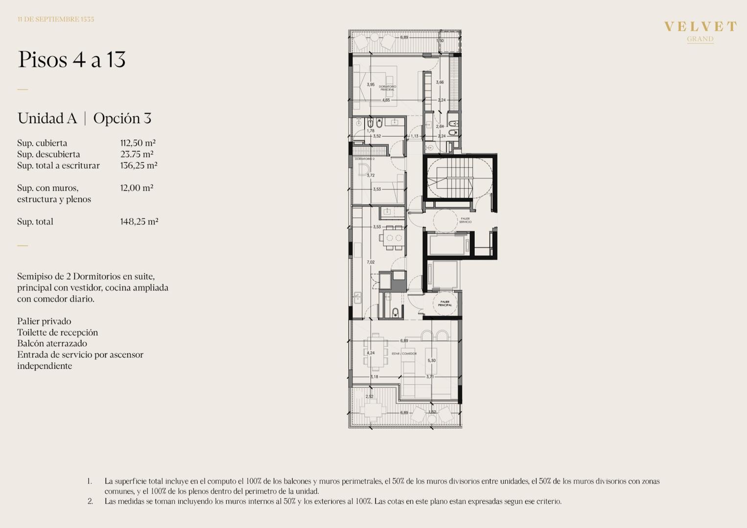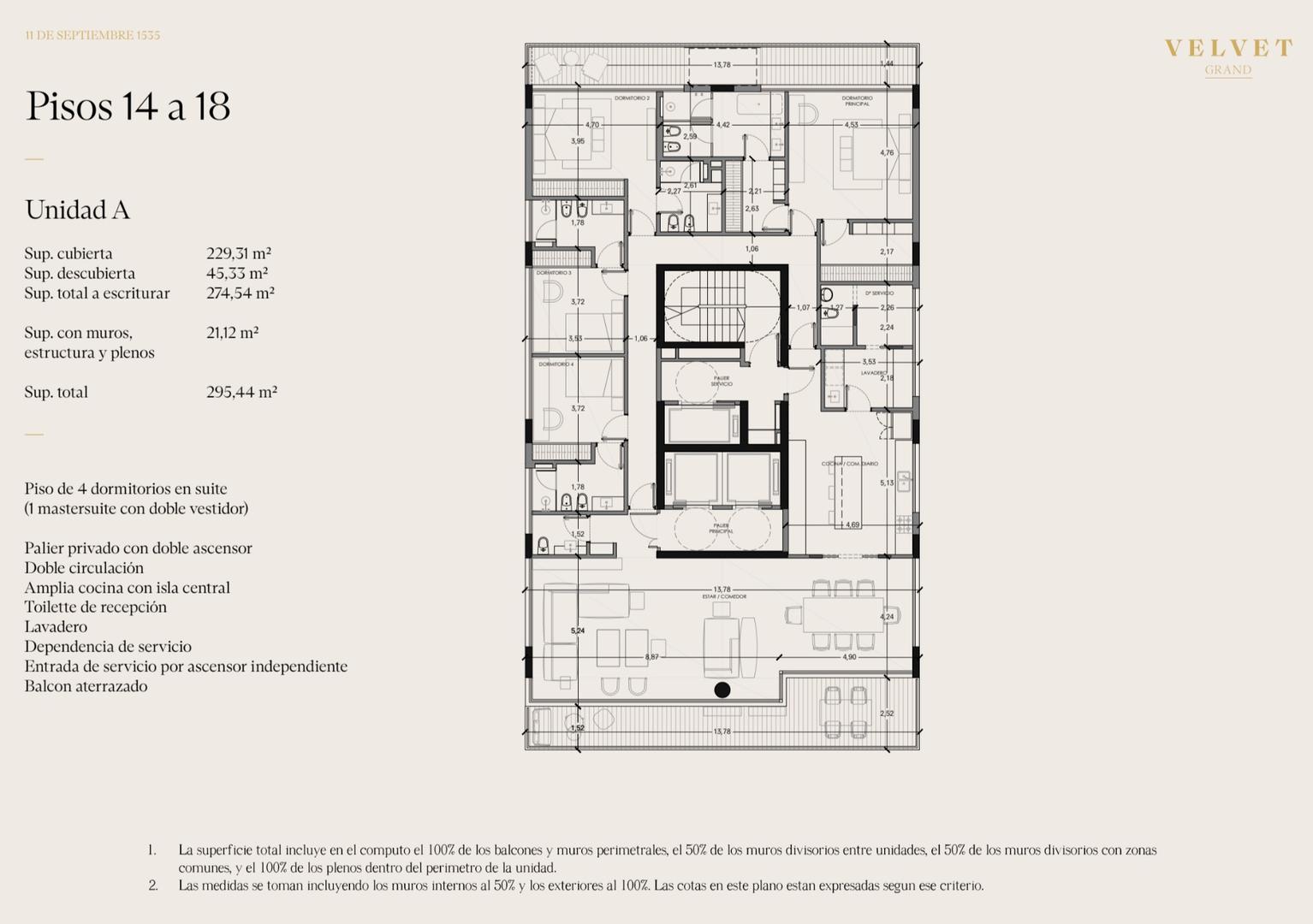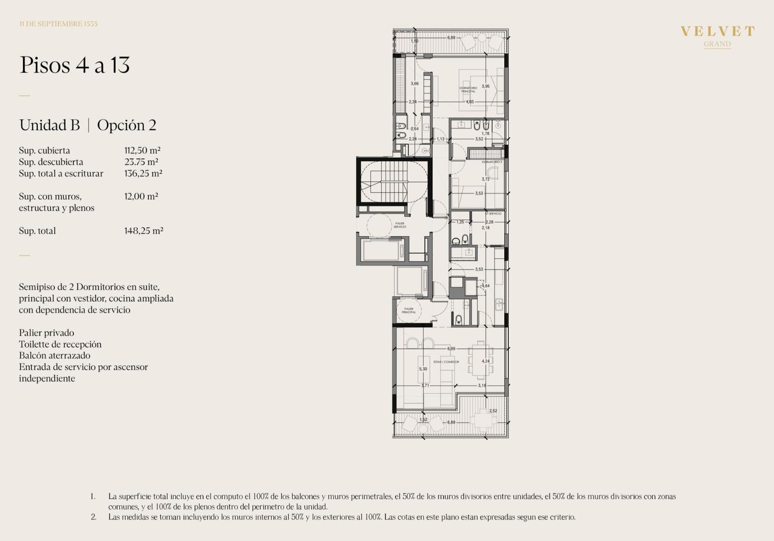 Pisos de 4 dormitorios en Suite con dependencia de servicio.