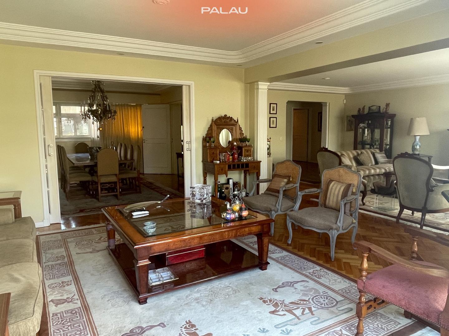 Primera planta: Amplia recepción , dos living con salida a balcón terraza, comedor, toilette, cocina con comedor diario, lavadero, dependencia de servicio con baño y un excelente dormitorio en suite al contrafrente ,con vestidor y salida a balcón corrido.